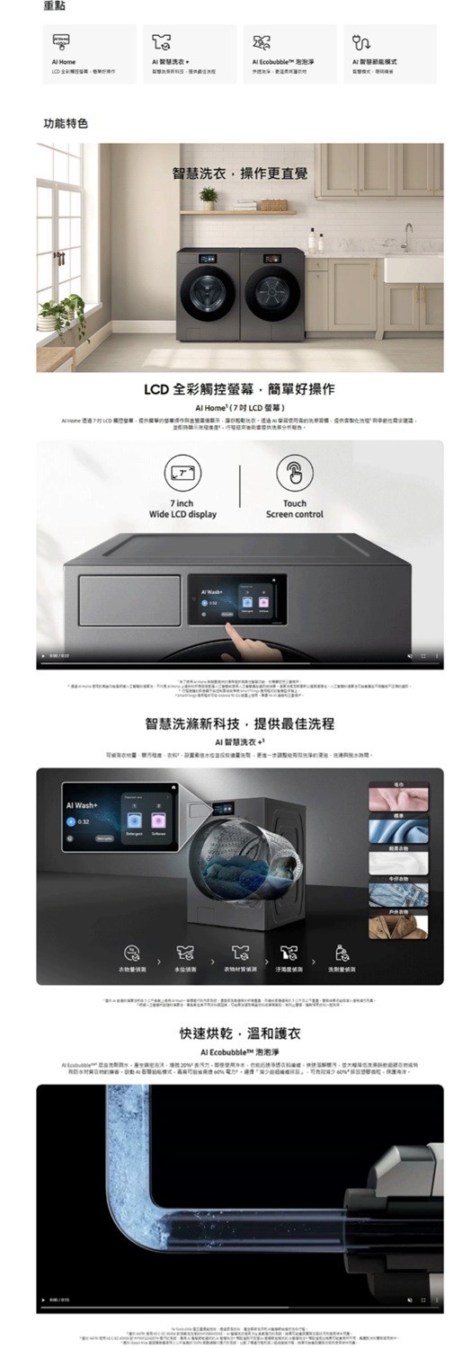 Samsung 三星 22KG BESPOKE AI 智慧蒸洗脫滾筒洗衣機 WF90F22ADSTW