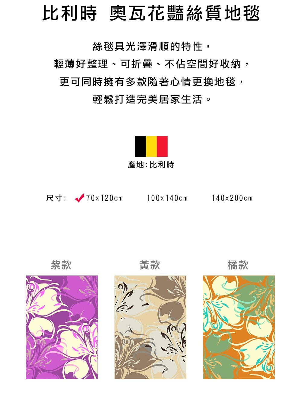 比利時 奧瓦花豔絲質地毯 黃 140x200cm