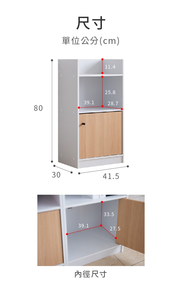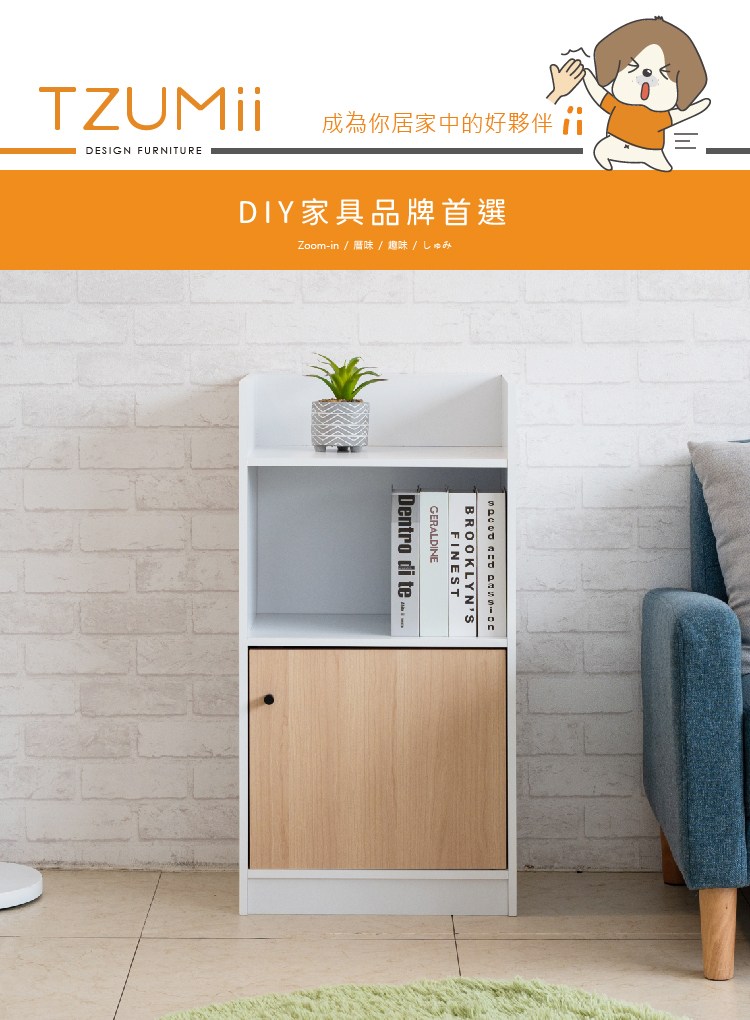 【TZUMii】質感二格一門櫃 收納櫃 附門收納櫃 單門收納櫃 雙色可選 棉花白