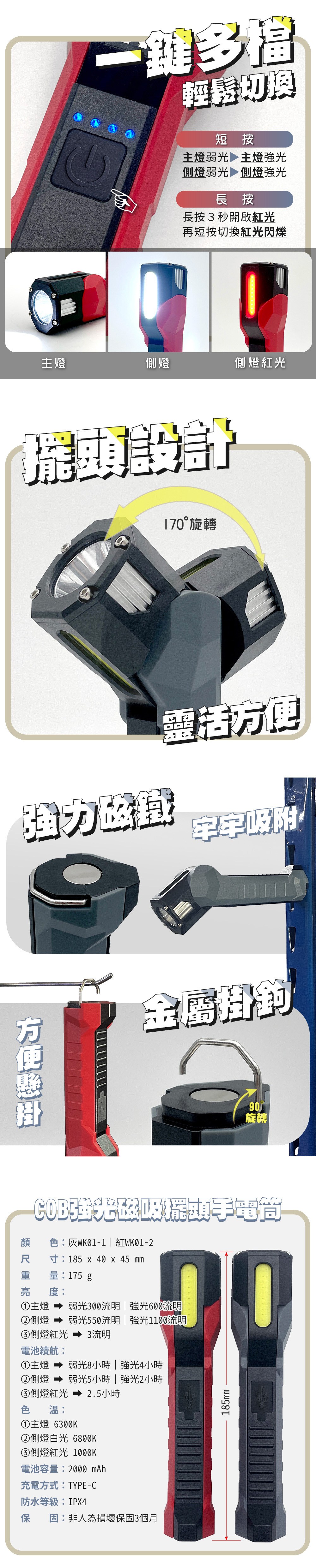 太星電工 夜巡俠LED充電式手電筒 輕巧便攜 節能LED燈 露營照明 藍色 1入