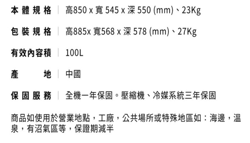 Kolin歌林 100公升臥式冷凍櫃KR-110F09~基本運送至一樓