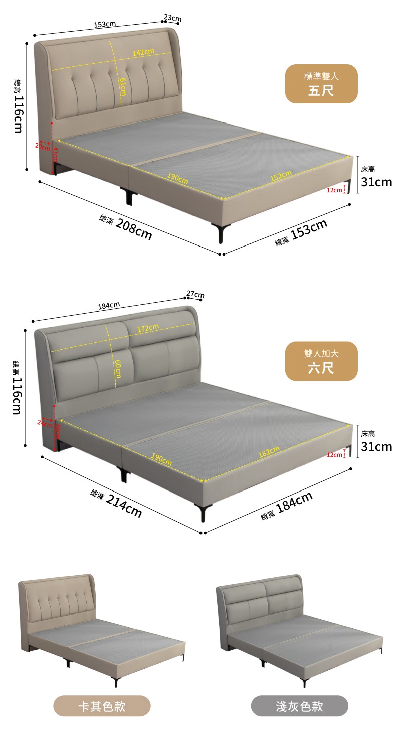 【IDEA】威尼6尺雙人加大貓抓皮床底/床架/床底座(雙色任選)卡其