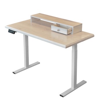 點我下載IHouse-雙電機+實木+架高架 120cm工學電動升降桌 (兒童書桌/辦公桌/書桌/站立桌/電腦桌/成長桌)黑桌腳/柚木色