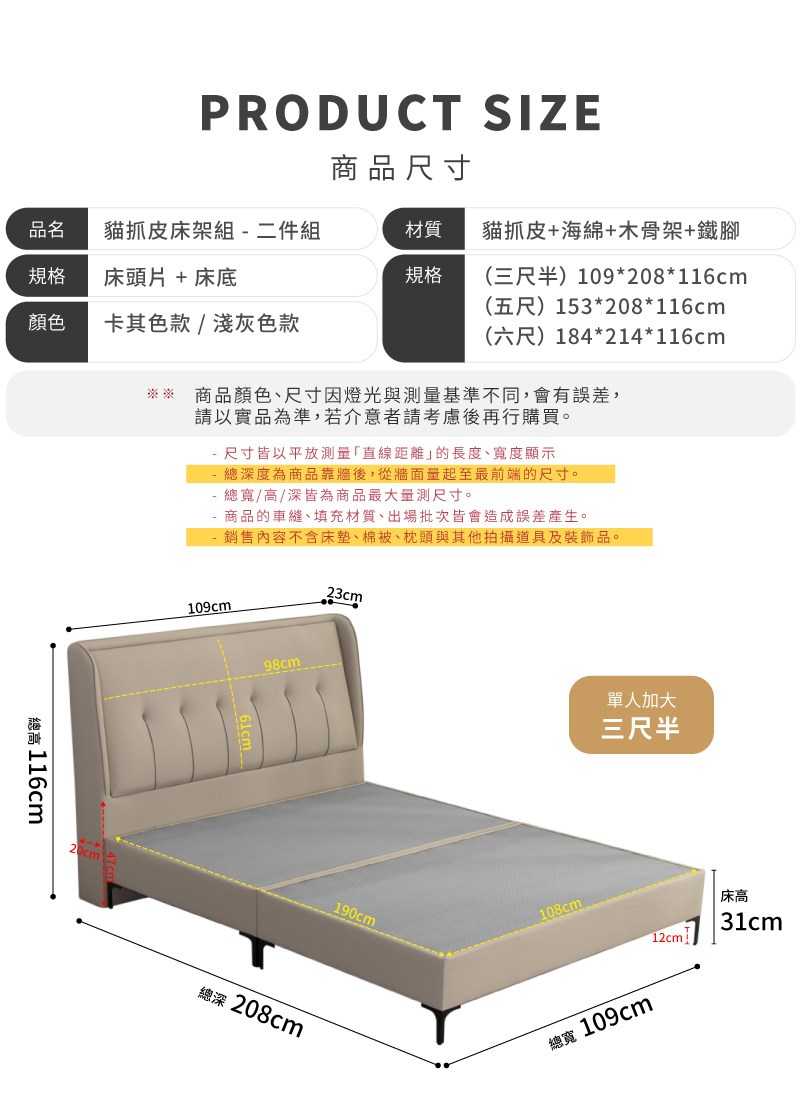 點我下載【IDEA】威尼5尺雙人貓抓皮床頭片/床頭/床片(雙色任選)淺灰色