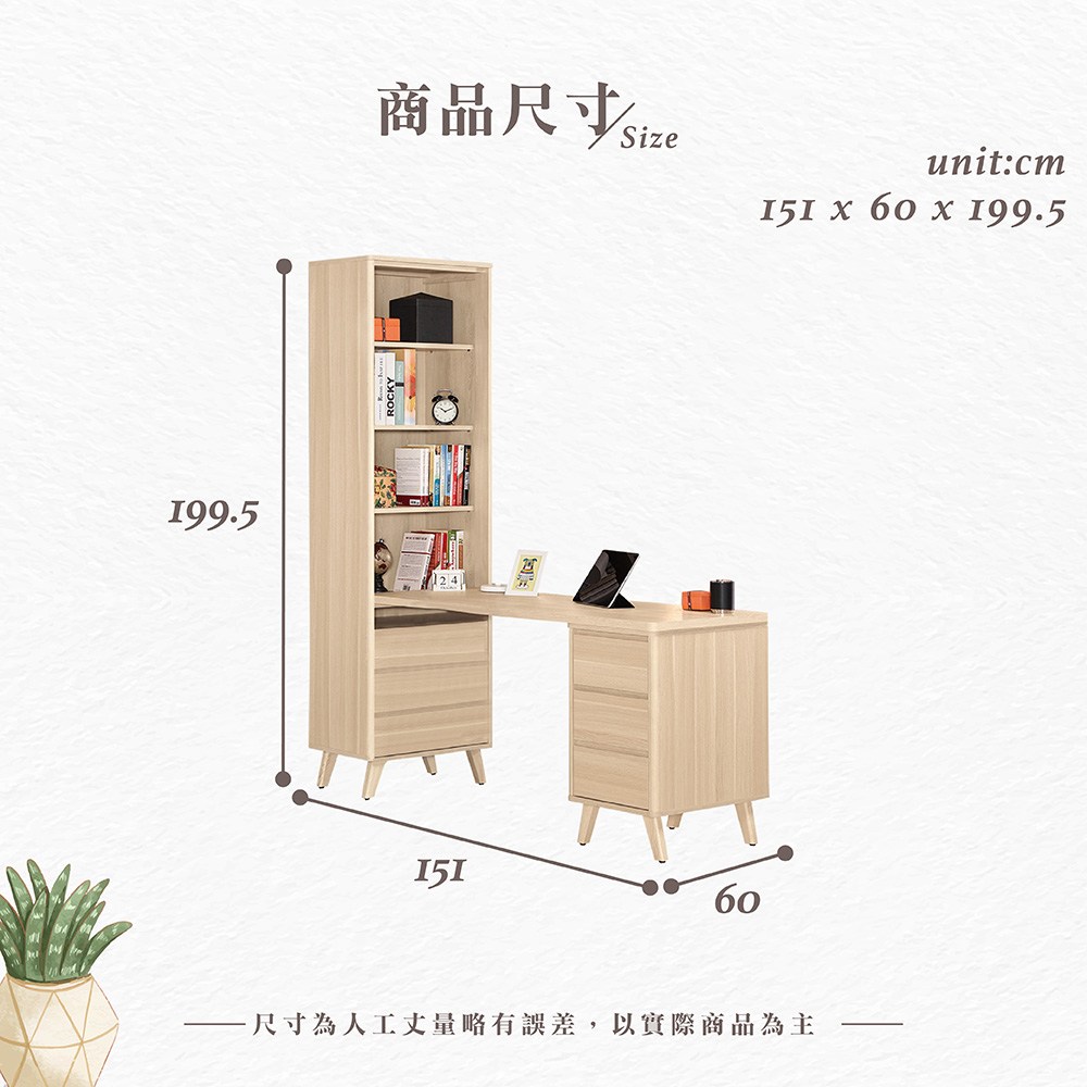 直人木業-北歐風白楓木L型可調整書桌搭三抽衣櫃高被櫥衣櫃組135公分