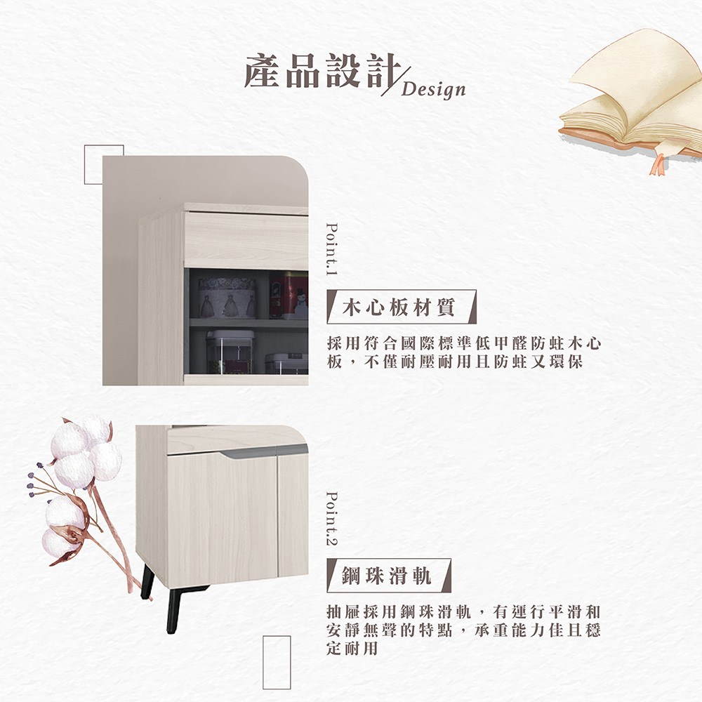 hoi! 林氏木業北歐風百搭0.9M高餐櫃 LS187-原木色+白色