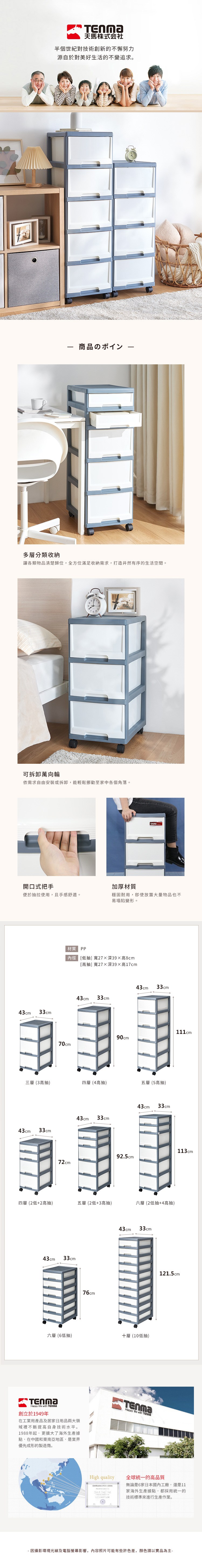 日本天馬 33面寬六層收納抽屜櫃附輪(6低抽)
