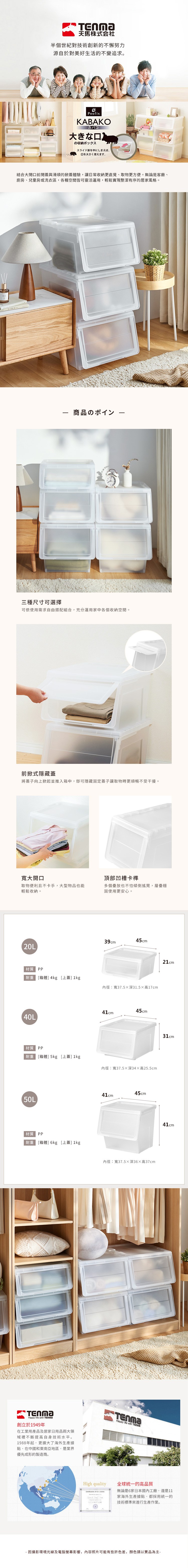 【日本天馬】45面寬河馬口霧透前掀滑蓋收納箱-40L-4入