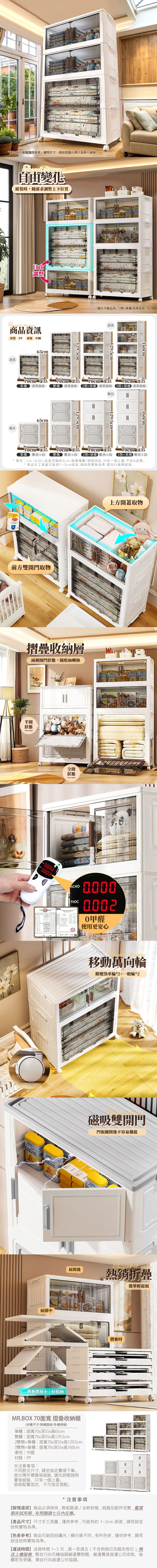 【Mr.box】70面寬摺疊收納櫃-附滑輪【單櫃】單櫃-透黑面板
