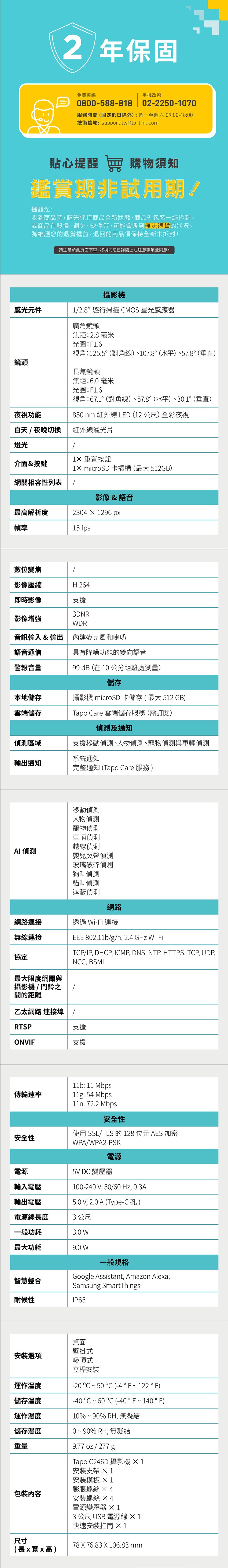 TP-LINK Tapo C246D 室內/戶外雙鏡頭旋轉式防護攝影機
