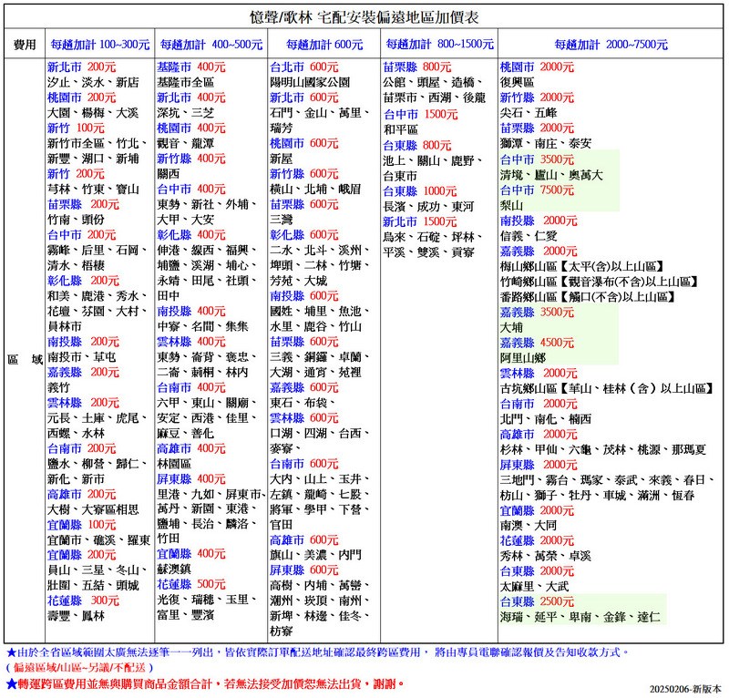 ◎本商品只限台灣本島運送,偏遠/特殊地區需額外加收物流處理費用(依圖示),由客服端另行通知訂單保留出貨與否的權利,請消費者見諒!!