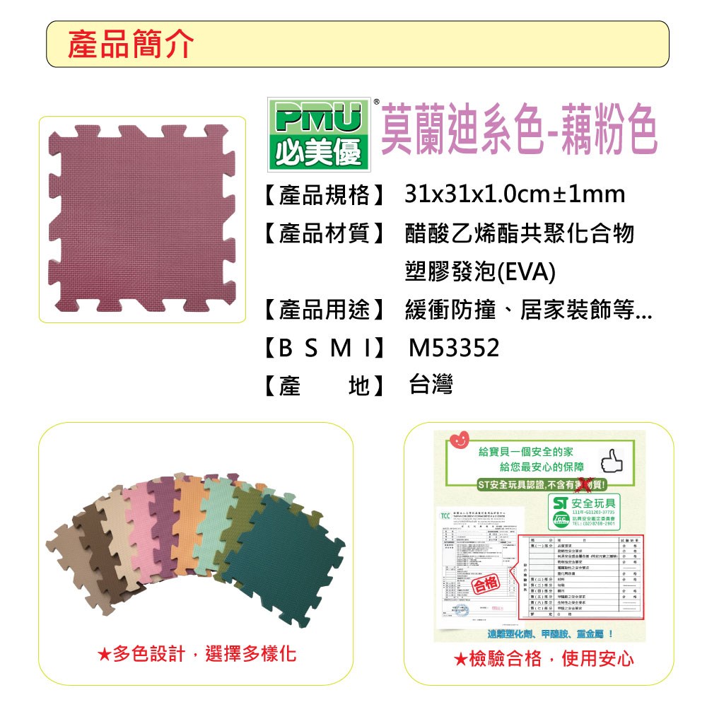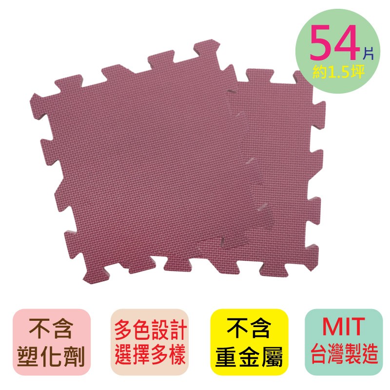 【PMU必美優】莫蘭迪素色巧拼地墊54片組(約1.5坪)-藕粉色