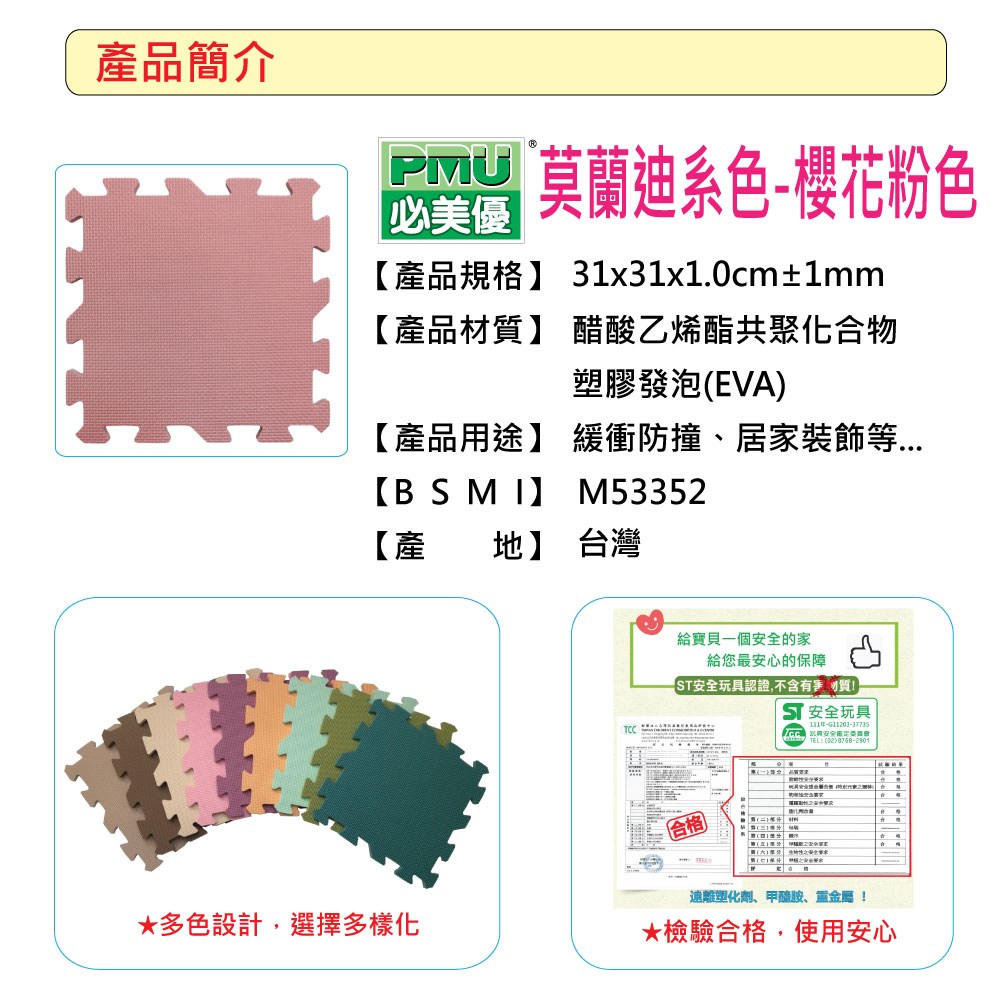 【PMU必美優】莫蘭迪素色巧拼地墊162片組(約4.5坪)-櫻花粉色