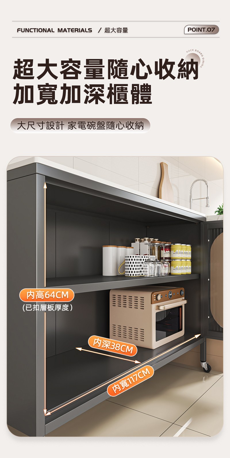 【含稅/免運】 簡約廚房櫥柜帶輪電器收納柜多層帶門餐邊柜多功能碗柜鋼制置物架