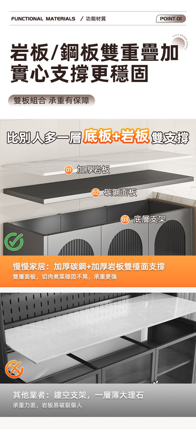 【慢慢家居】專人組裝-長虹玻璃門-岩板對開門鋼製餐廚櫃-120x42cm(餐櫃 餐邊櫃 電器櫃 廚房收納 收納櫃 廚房置物櫃)岩板餐櫃-120cm(白櫃體)
