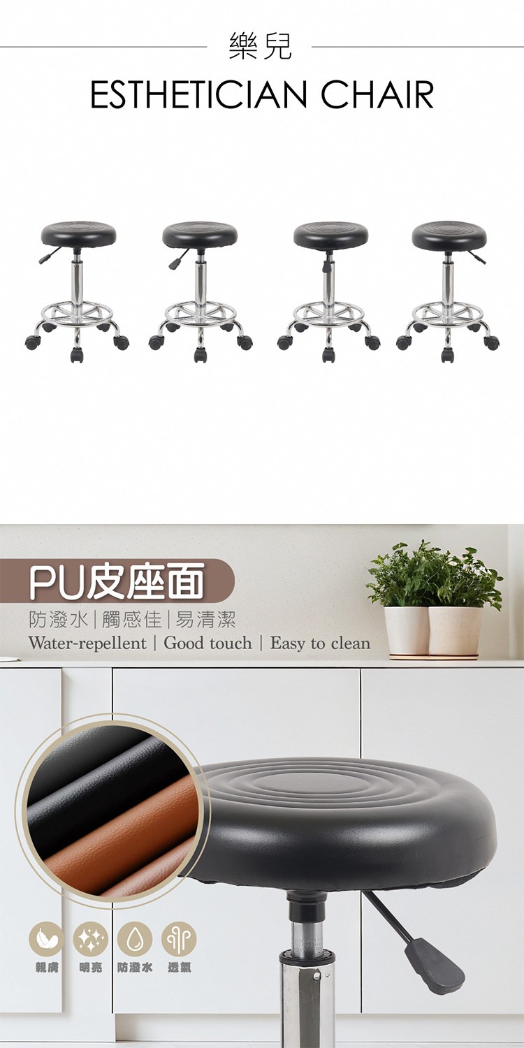 * 防潑水透氣PU皮椅面、易於清潔