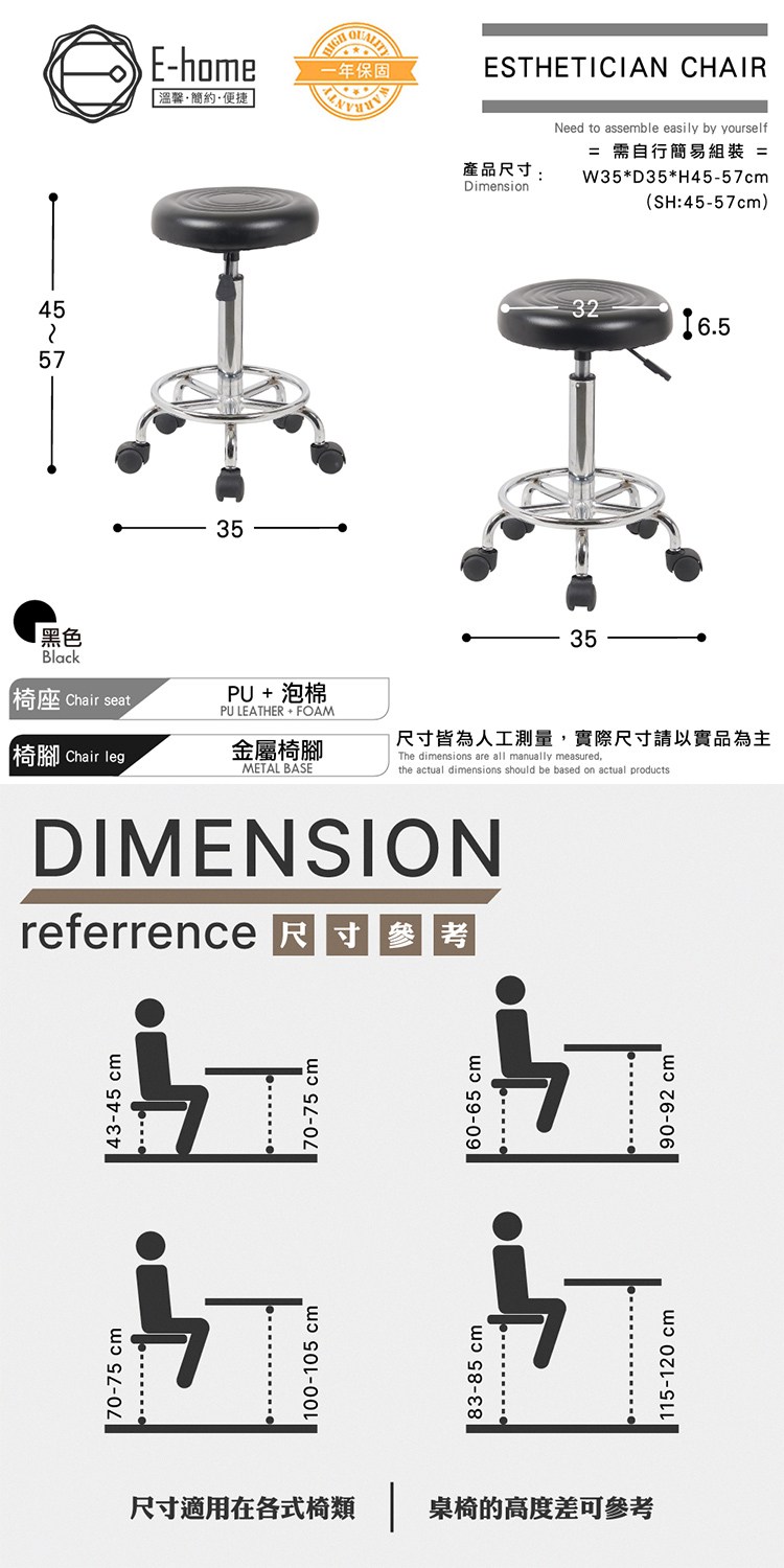 產品尺寸:W35*D35*H45-57 cm (SH:45-57 cm)