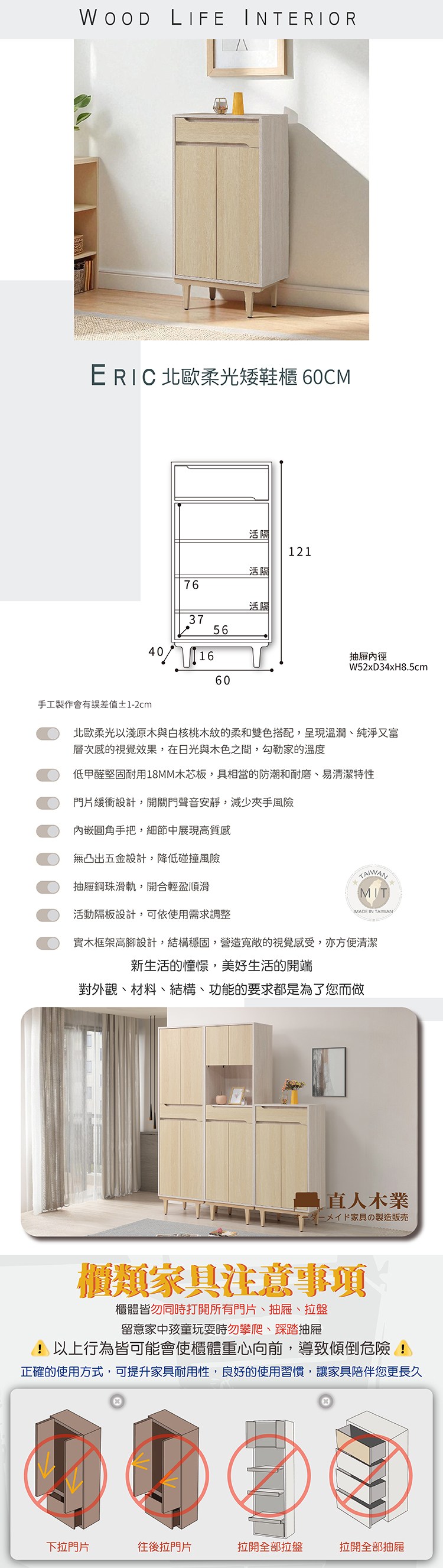 直人木業-ERIC北歐柔光矮鞋櫃60公分