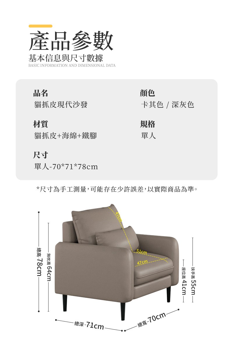 【本木】大和 台灣製耐磨貓抓皮1人坐沙發雲灰色#6710