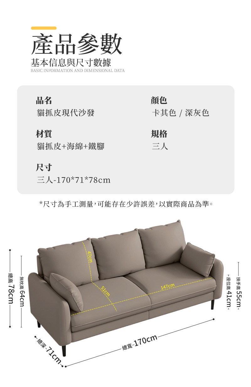 米杰貓抓皮沙發三人座