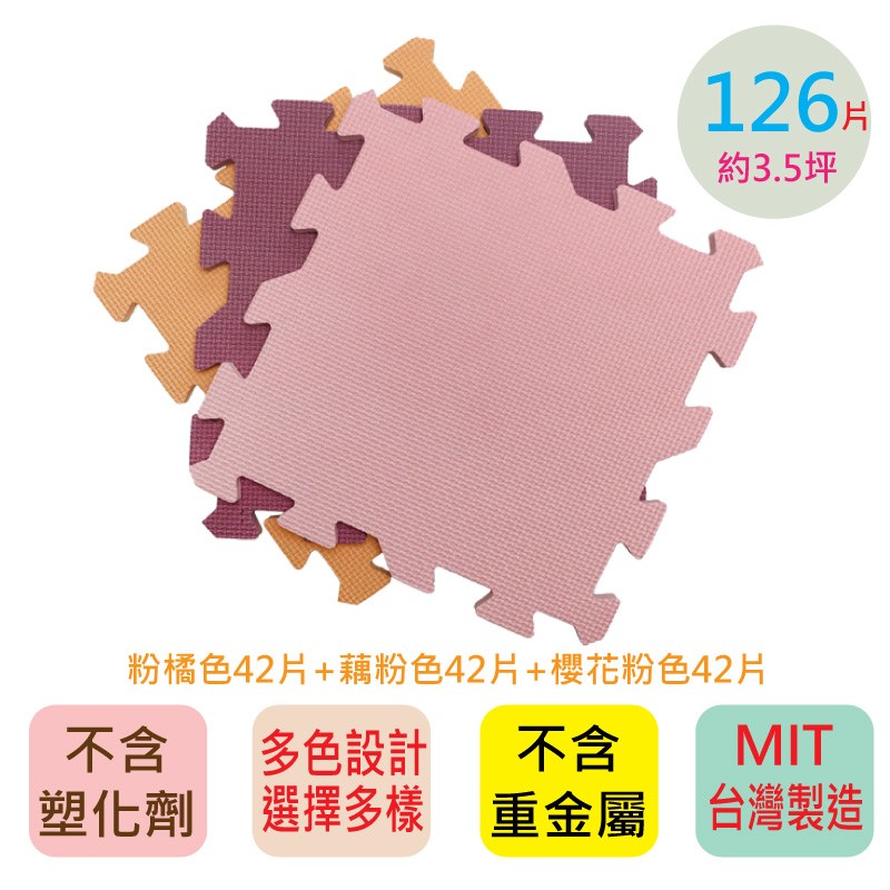 【PMU必美優】莫蘭迪素色巧拼126片(約3.5坪)-粉橘色+櫻花粉色+藕粉色