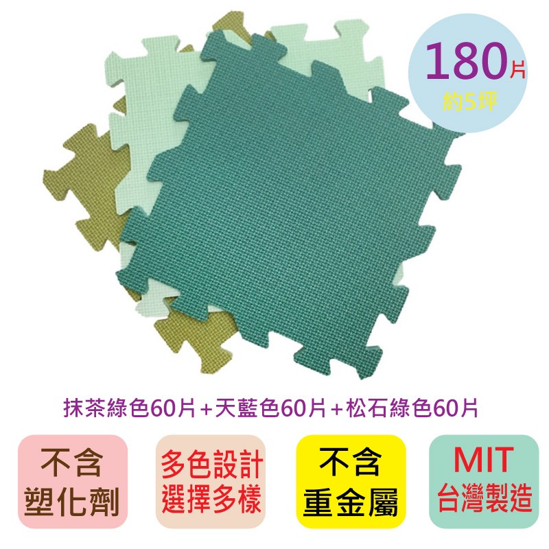 【PMU必美優】莫蘭迪素色巧拼180片(約5坪)-抹茶色+天藍色+松石綠色