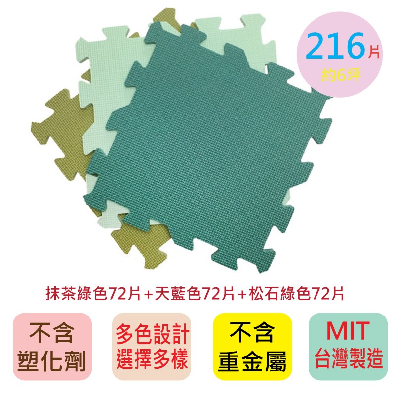 【PMU必美優】莫蘭迪素色巧拼216片(約6坪) 抹茶色+天藍色+松石綠色 (免費運送至1樓)