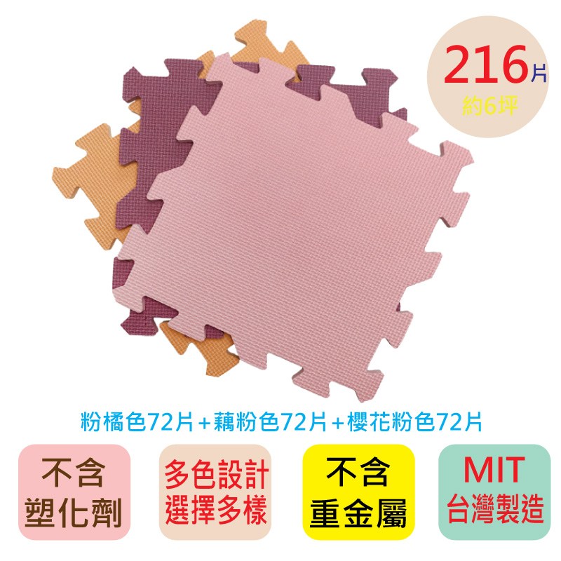 【PMU必美優】莫蘭迪素色巧拼216片(約6坪) 粉橘色+櫻花粉色+藕粉色 (免費運送至1樓)