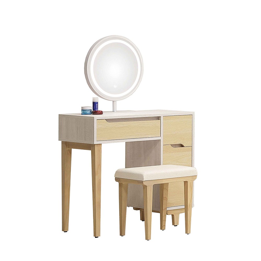 林氏木業北歐原木風抽屜櫃附鏡可伸縮化妝桌組 UE1C (附妝凳 JF1H) (H014378516)