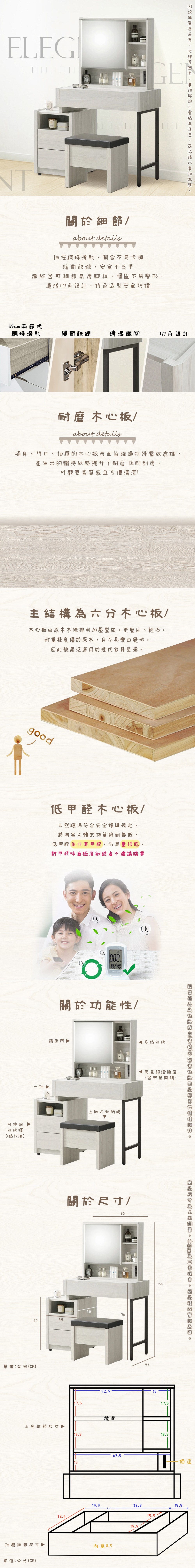 AS雅司-拍羅3.3尺鏡台-含椅-100*42*136cm