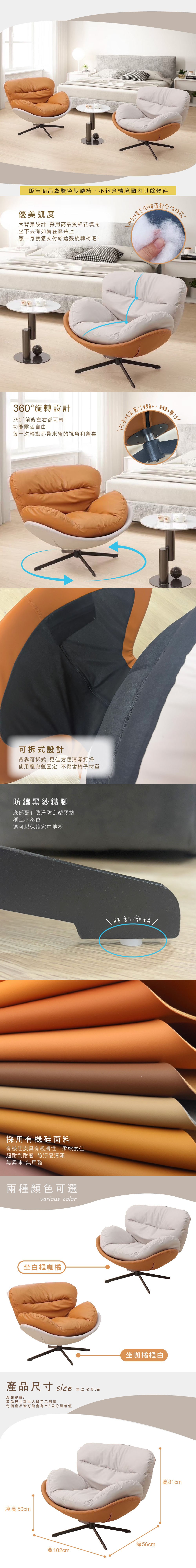 本木-碩宇 雙色旋轉休閒椅坐白(框咖橘)
