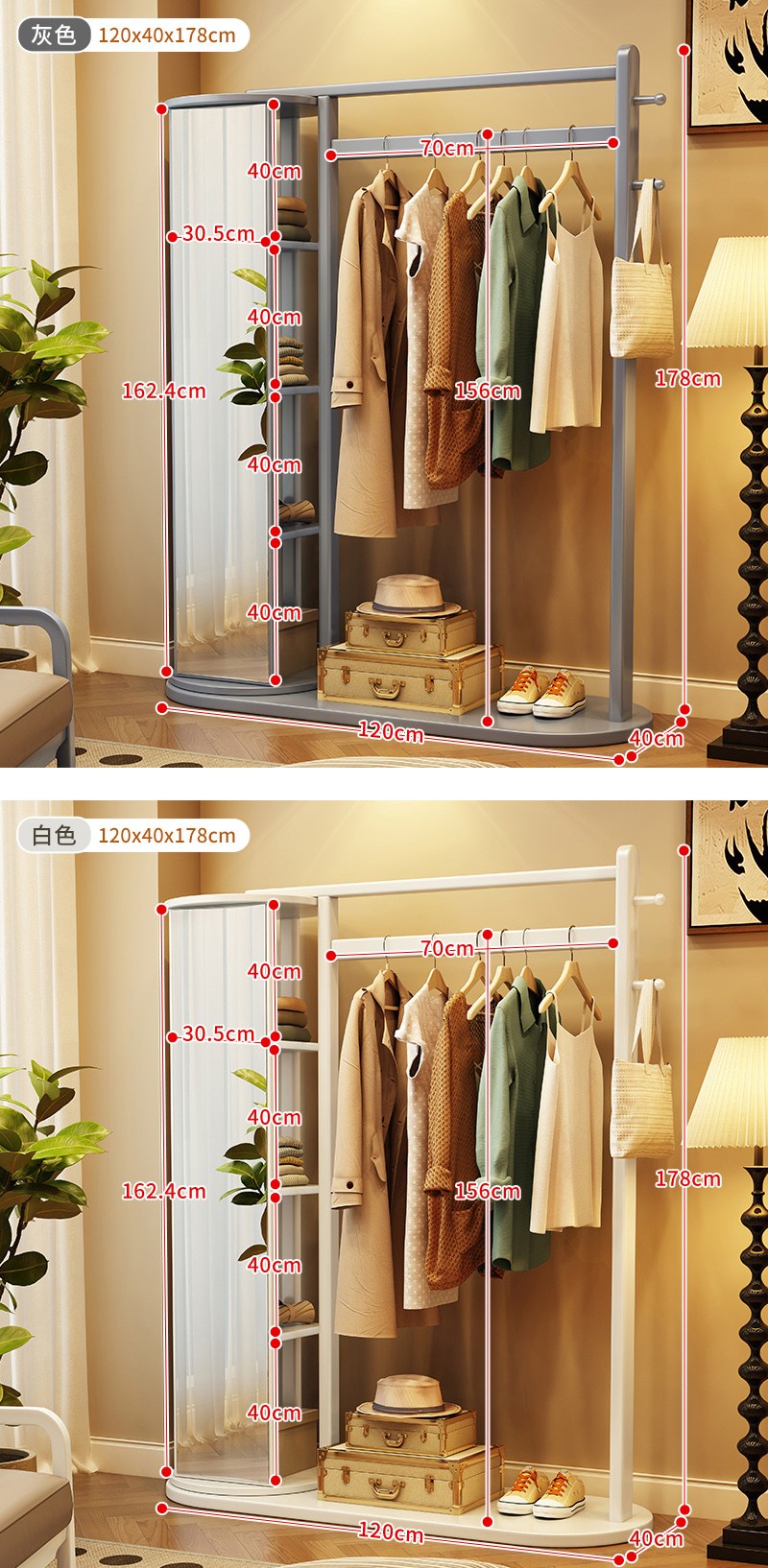 【HappyLife】實木旋轉鏡衣帽架 C款 120公分 Y12134灰色