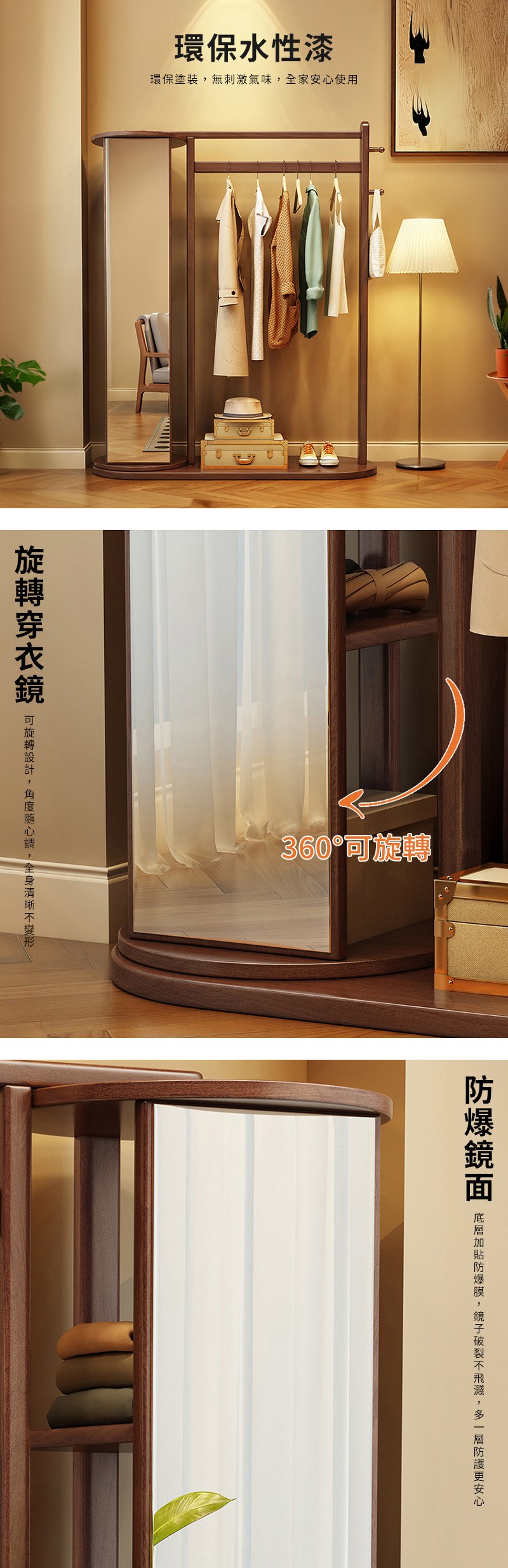 【HappyLife】實木旋轉鏡衣帽架 C款 100公分 Y12133胡桃色