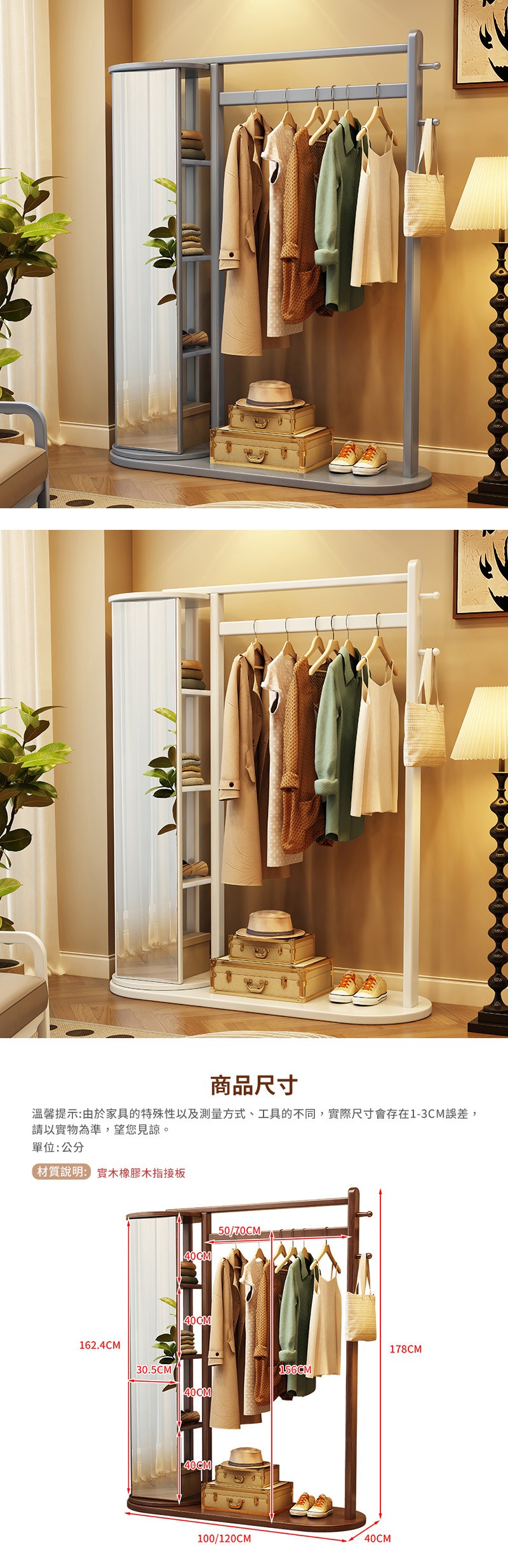 【HappyLife】實木旋轉鏡衣帽架 C款 120公分 Y12134灰色