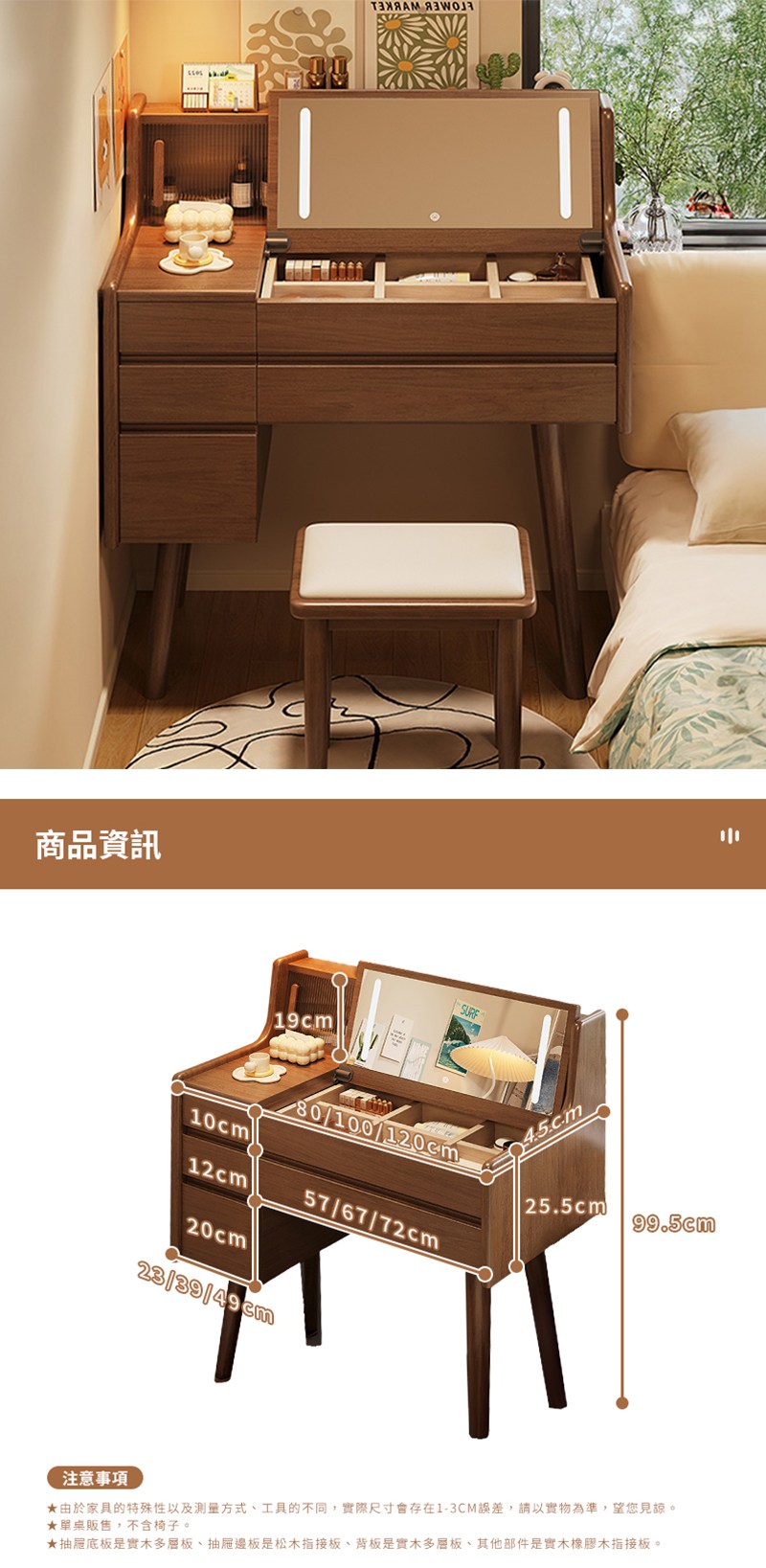 AS雅司-Beautiful化妝台-含椅-90*40*76cm