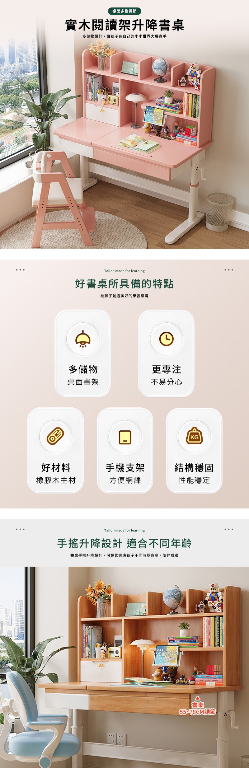 E-home GUGU古古多功能書架雙抽陪讀兒童升降成長桌-寬120cm-三色可選粉紅
