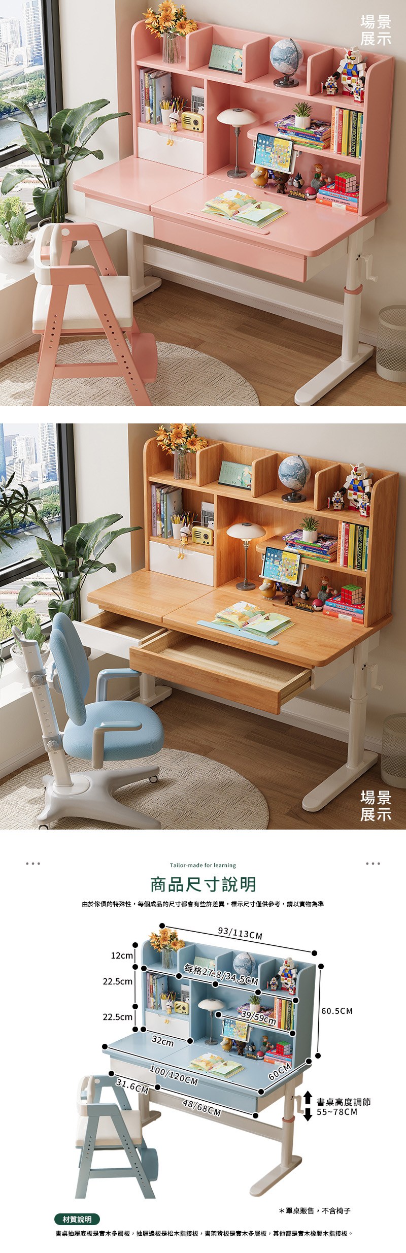 【HappyLife】實木升降雙層書架書桌 80公分 Y12060藍白