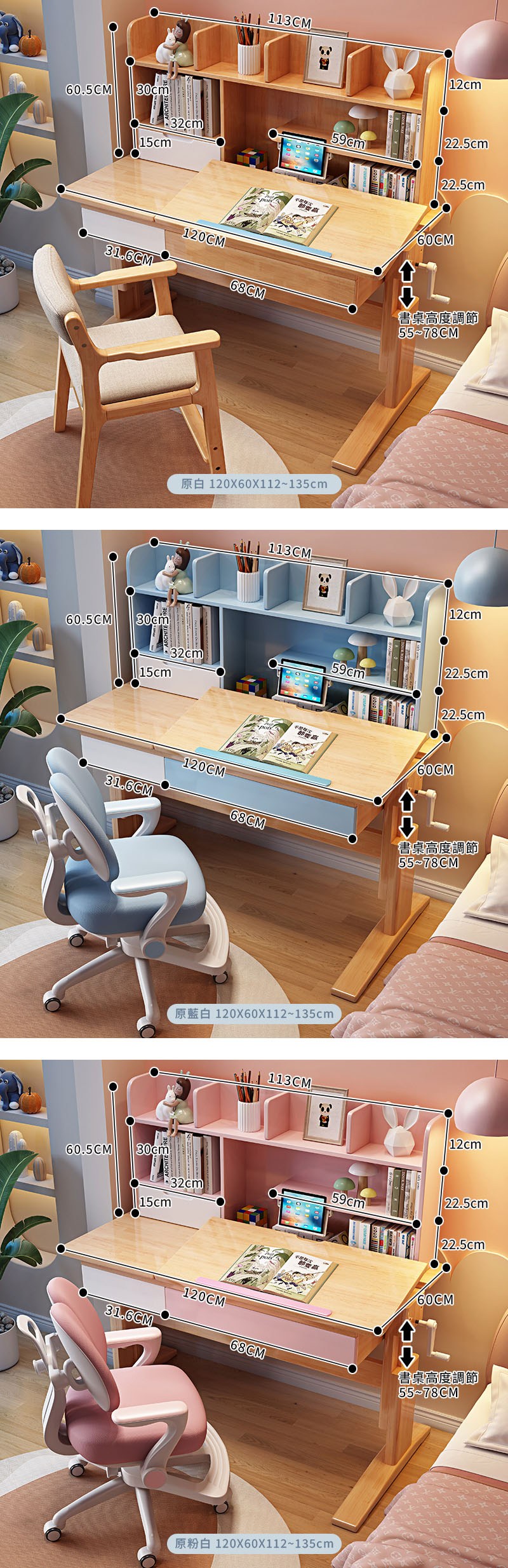 【HappyLife】實木升降書架書桌 120公分 Y12147粉白
