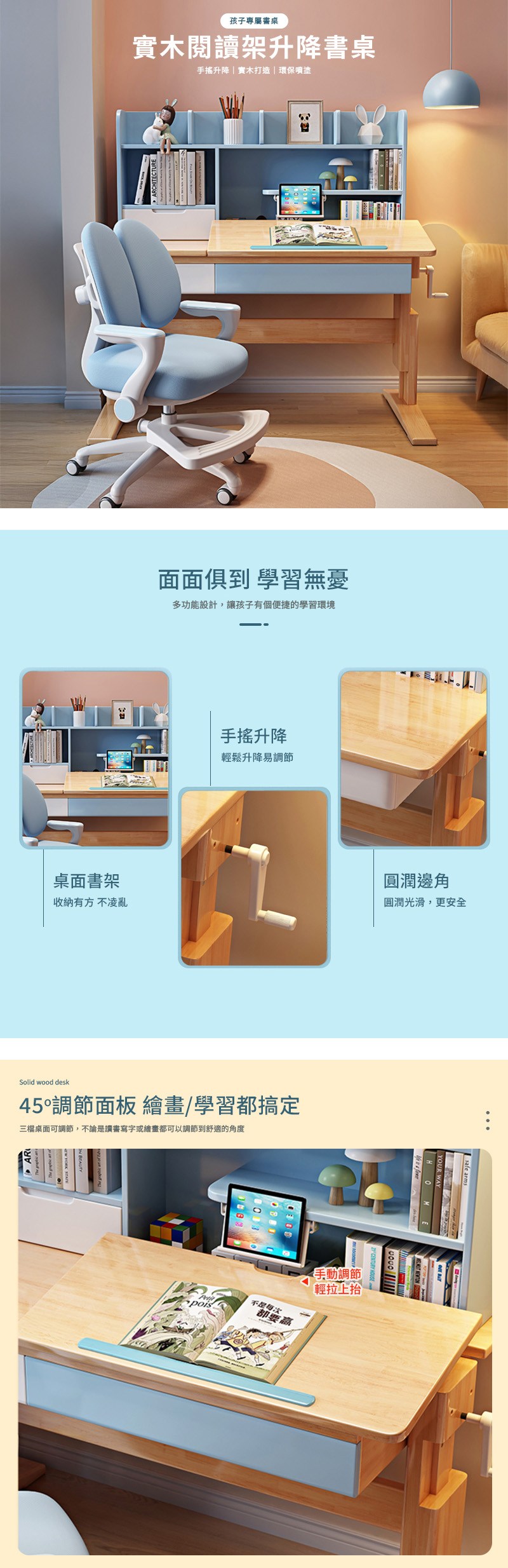 【HappyLife】實木閱讀架升降書桌 D款 100公分 Y12156原藍白