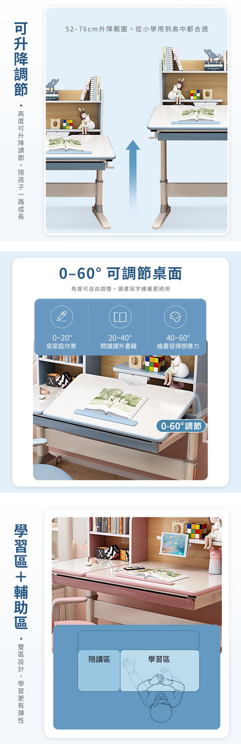 E-home GUGU古古多功能書架雙抽陪讀兒童升降成長桌-寬120cm-三色可選藍色