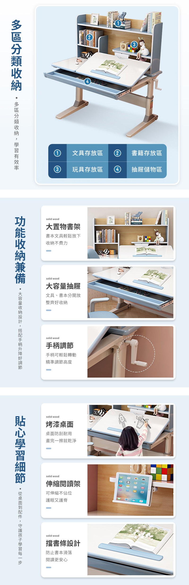【HappyLife】實木閱讀架升降書桌 D款 100公分 Y12156原藍白