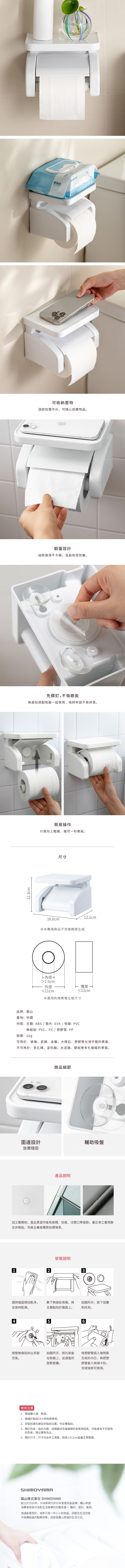 【日本霜山】免鑽釘壁掛吸盤式捲筒面紙架
