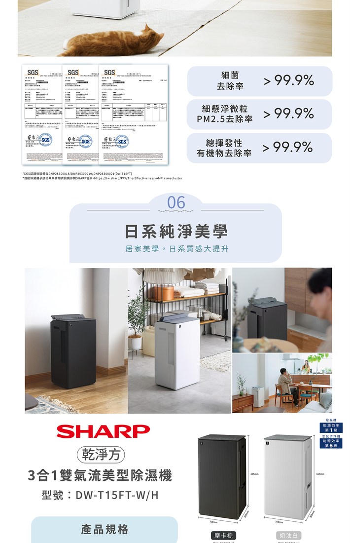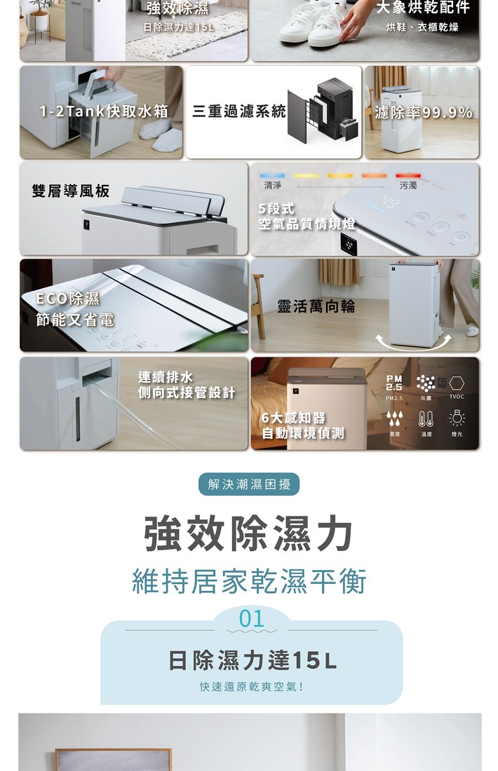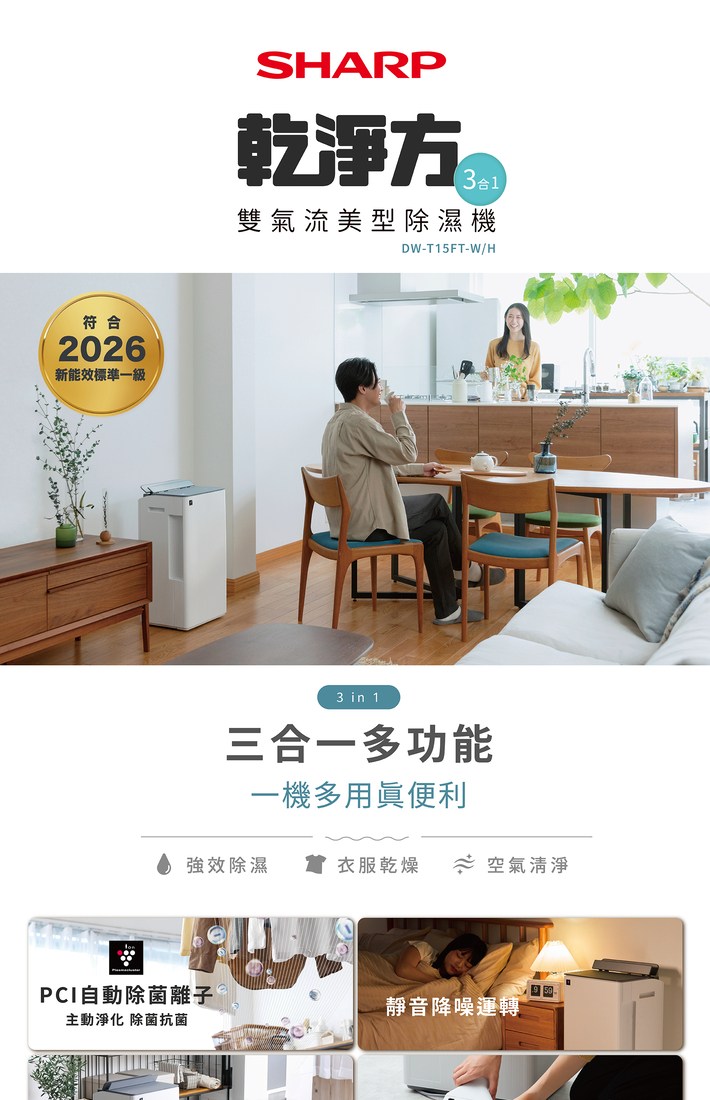 SHARP 夏普 15L 乾淨方3合1雙氣流美型除濕機 DW-T15FT