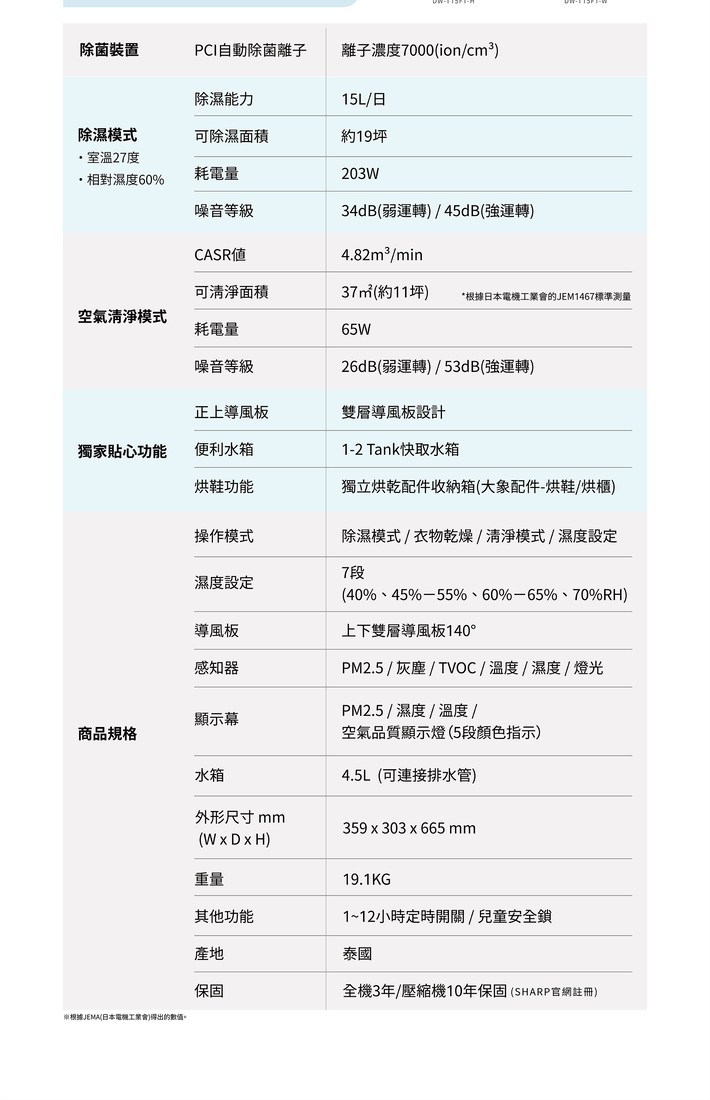 SHARP 夏普 節能自動除菌除濕機 10.5L 31.4 x 22.5 x 55.8cm 11.7kg DW-WT10HT-W