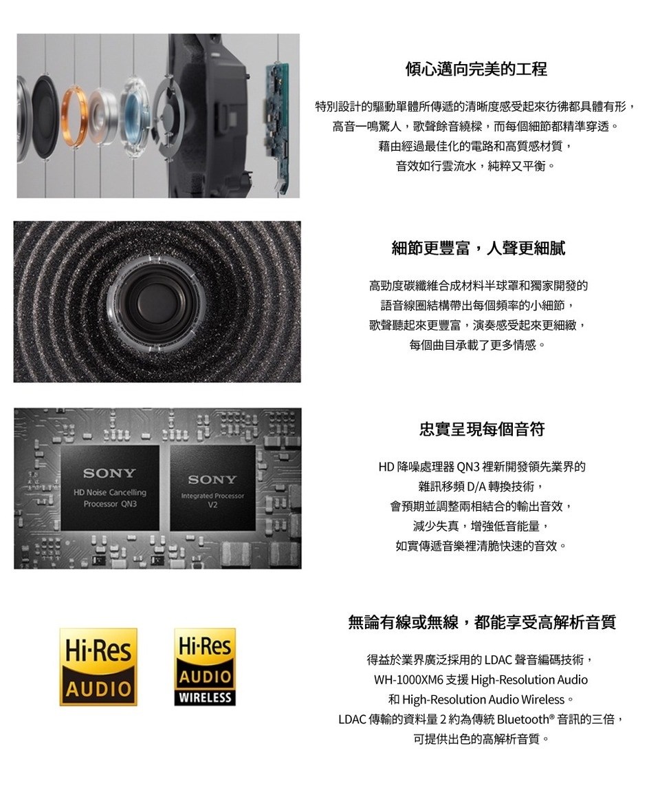 頻率響應 (BLUETOOTH☆ 通訊模式):20 Hz-20,000 Hz (44.1 kHz 取樣) 20 Hz-40,000 Hz (LDAC 96 kHz 取樣 990 kbps)