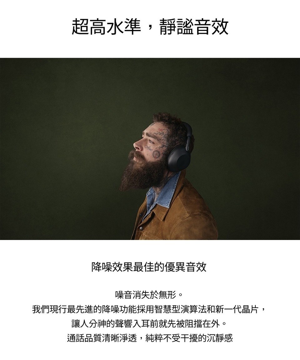 電池續航力 (音樂連續播放時間):最長 30 小時 (降噪功能開啟),最長 40 小時 (降噪功能關閉)