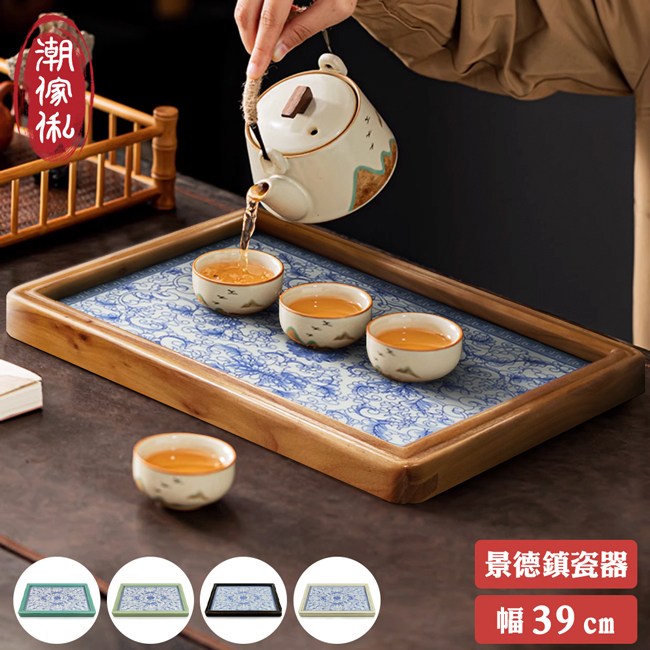 【C'est Chic】清盞香茗景德鎮青花瓷方茶盤-幅39cm-5色可選