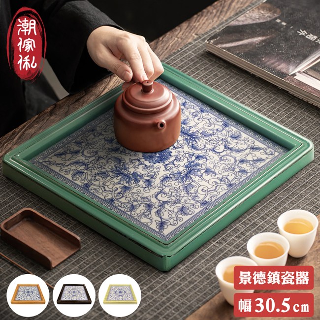 【C'est Chic】柏詩南景德鎮青花瓷方茶盤-幅30.5cm-4色可選
