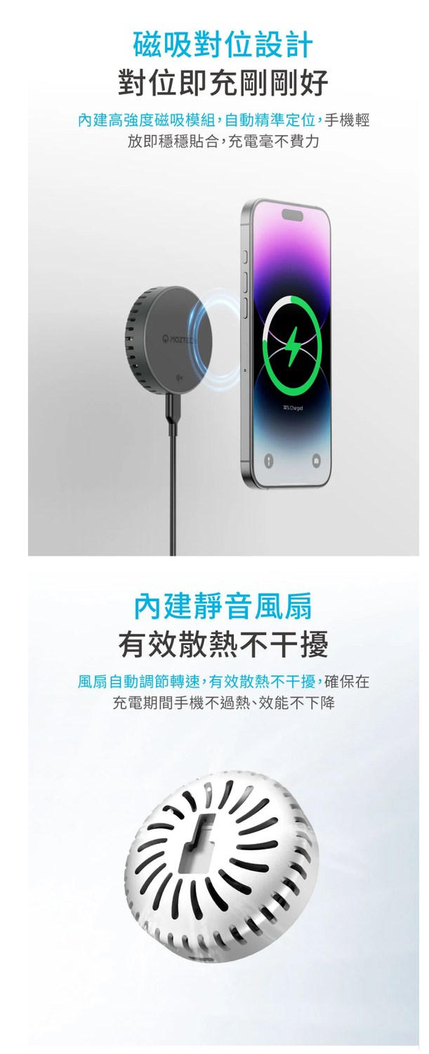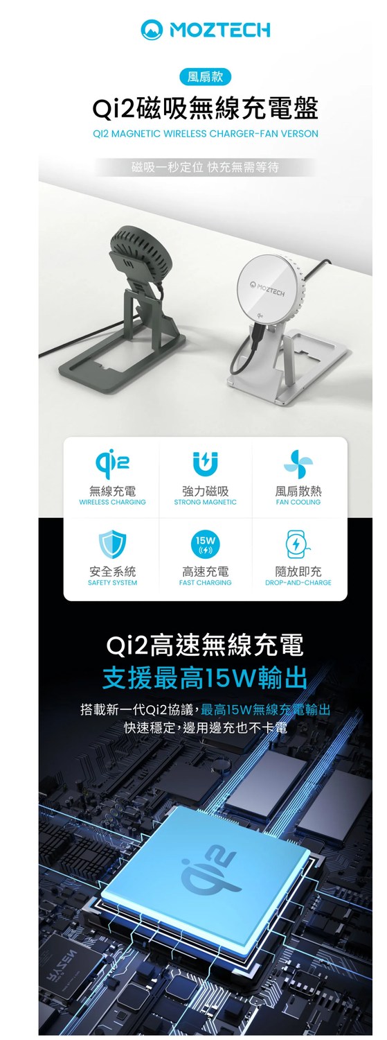MOZTECH® Qi2磁吸無線充電盤(風扇款)