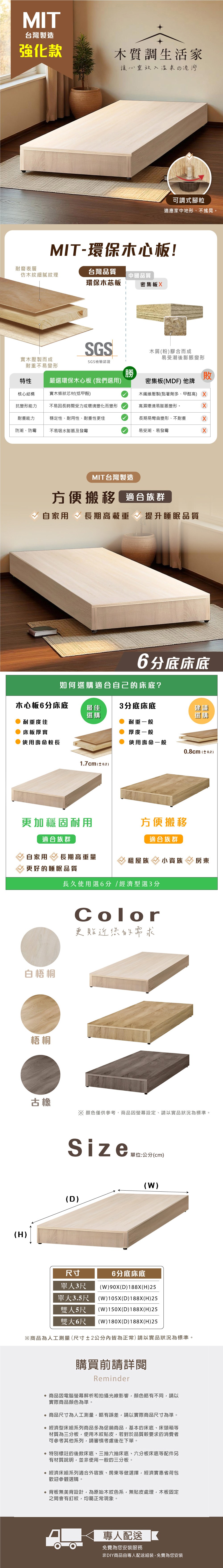 傢俱工場-小資型強化6分硬床座/床底/床架-單大3.5尺梧桐